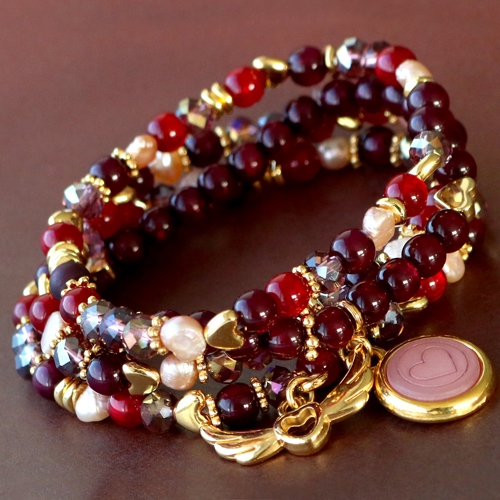 When you think about the colours red, aubergine and bordeaux, you think about love! That's why we made this cute jewellery set especially for Valentine's Day. In this beautiful set we used 6mm round Polaris Elements beads. We also used top faceted beads, freshwater pearls and nice DQ metal charms in gold. The Swarovski flatback chaton and Polaris Elements cabochon with laser heart make this jewellery set look even more lovely. What will you create for your Valentine?