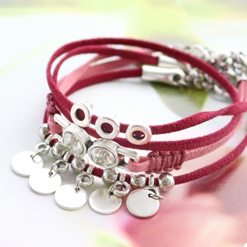 Fashion bracelets and keychain with trendy flat cord suede style
