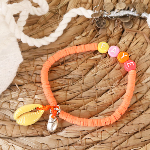 Cheerful jewellery with letter beads, fimo charms, wooden beads and Katsuki beads