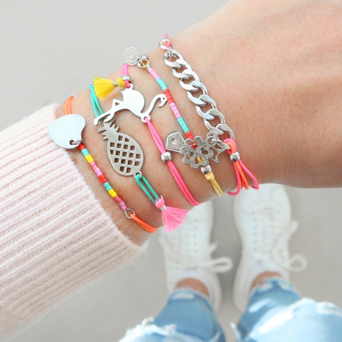 Bracelets of coloured cord with cute summery charms of stainless steel