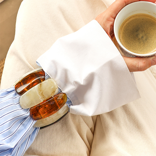 Bracelets bangle resin Transparent Amber Brown-White-Black