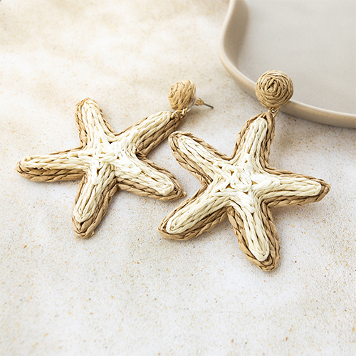 Trendy raffia earrings starfish Beige-Light Brown-Gold