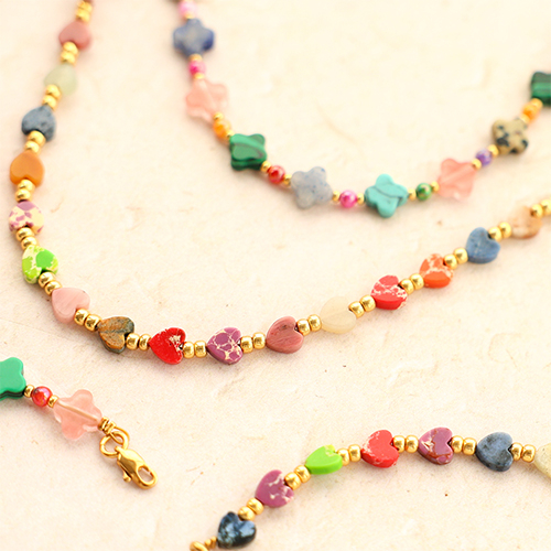 We have a stunning new collection of natural stone beads in heart and clover shapes. Perfect for creating stylish jewellery, available in beautiful colours like red, blue, green, pink, and beige. Use the beads in necklaces or as charms and combine them with chain, metal wire, and Miyuki beads for a unique touch!