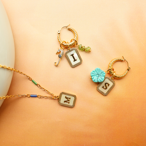 This new collection of stainless steel shell charms is available in all letters. Perfect for making necklaces combined with glass pearls, chain links, and natural stone chipstones or for earrings with natural stone flowers and hoops. Add a personal and luxurious touch to your jewellery with these versatile charms!