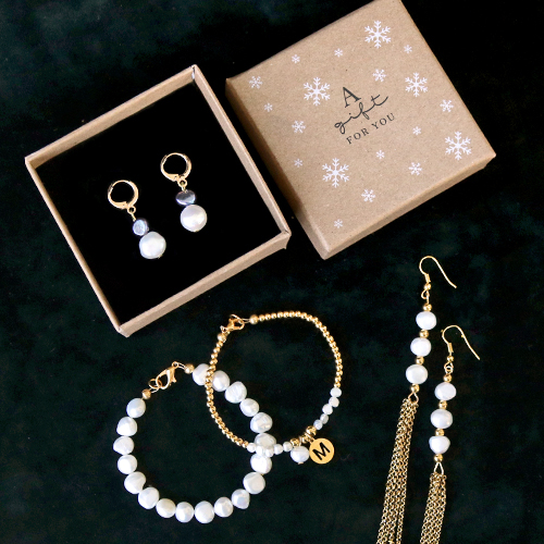Jewellery making, using freshwater pearls, doesn’t have to be difficult at all. We created some easy, but super stylish earrings and bracelets with the new collection of freshwater pearl nuggets. This is very easy to execute when you, for example, choose to combine the freshwater pearls with gold coloured jewellery findings, like belcher chain, eyepins, DQ European metal beads and pretty gold coloured lobster clasps. The combination of the luxurious freshwater pearls nugget with the gold coloured items creates a festive look, which of course can’t be missed upcoming holiday season!