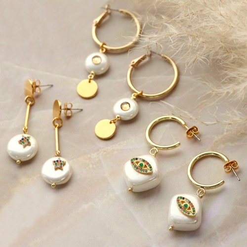 Get started and make trendy jewellery with the pearl shine shell items in combination with the zirconia brass elements