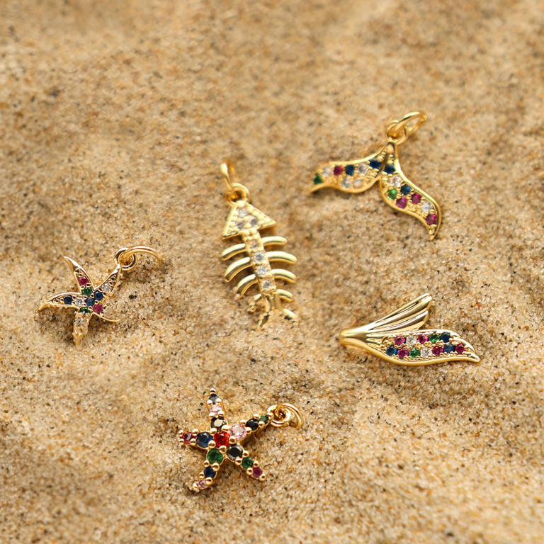Discover our gorgeous new collection of Brass TQ metal charms. Available in various sealife shapes like jellyfish, starfish, octopus, and seahorse. Incorporate them into layered necklaces or stylish rings for a gorgeous summer collection