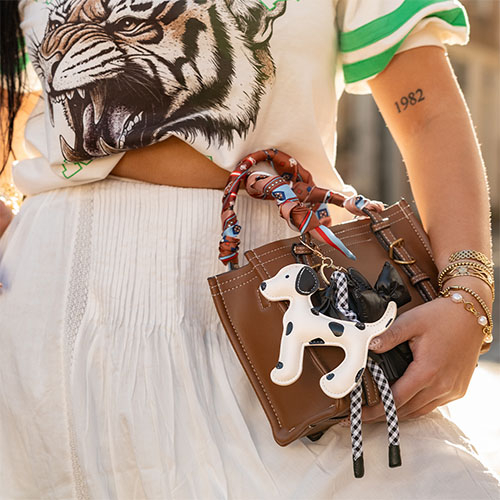The new mega collection of bag charms has arrived, featuring a denim bag, a flower, a dog, an ice cream, a pizza, and so much more. Playful, colourful and totally on trend, exactly what you’ll see everywhere this spring and summer. Which charms would you choose?
