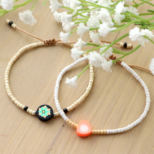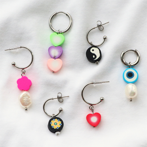 This sunny new collection of polymer beads inspires you directly to make trendy sets of jewellery. Partly because you can combine them easily with a whole collection of other beads. Make for example a necklace with belcher chain and fix the polymer bead like a charm. Make your own charm with headpins and polymer beads. Fix the charms to the belcher chain by using round nose pliers. Alternate these polymer bead charms with other charms for a unique look. The colourful beads can easily be combined with small beads to create a big variety of simple bracelets and ankle bracelets. Create trendy jewellery by hanging a yin and yang polymer bead to an earring. You can quickly design a beautiful collection of jewellery by combining the polymer beads with freshwater beads, tube beads or stainless steel beads.