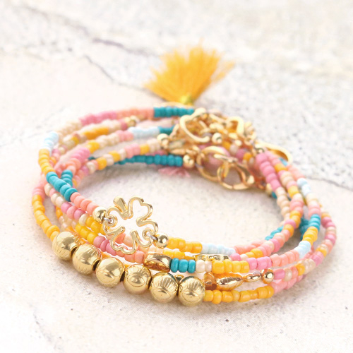 Do you feel happy when you’re looking at all those cheerful colours of the new collection glass seed beads? We most certainly do. As inspirational set we’ve created some summery bracelets with the new glass seed beads. We decorated the bracelets by using gold coloured DQ European metal charms. Another fun option is to decorate your bracelets with fun tassels or top faceted beads for example. The bracelets are quickly made, but also have a fantastic result!