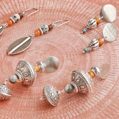 This series of metal beads and charms Top Quality is ideal if you want to design an earring collection. The beads and charms have beautiful details. Those details will stand out even more if you don’t add too many other items. Use earring findings, natural stone beads and ceramic beads which you attach with eyepins or headpins. Use also the Round Concave Pliers for perfect loops!