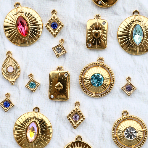 Be inspired by our new collection of stainless steel charms and create a loving collection. This collection is designed by our own design team and available in beautiful shapes. Perfect for making necklaces and earrings. You don't want to miss this!