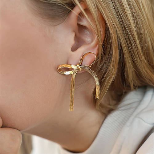 Stainless steel earrings / earpins bow Gold