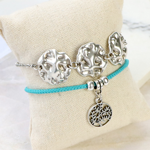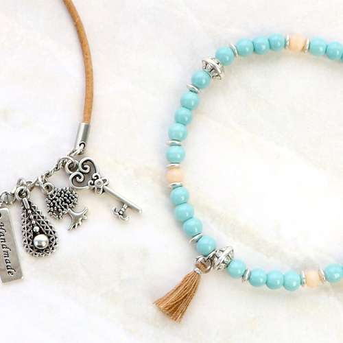 With DQ European metal you can create many different kinds of jewellery. You can easily create a cute bracelet by threading glass beads or natural stone beads on elastic cord and decorate them with the DQ metal beads. The DQ European metal beads can also be slid over trendy cord or leather items. Finish off the bracelet with a magnetic clasp and your trendy bracelet is ready! Another tip is to combine our 2mm leather with a connector made of belcher chain. To complete this piece of jewellery, hang your favorite DQ European metal charms on the belcher chain. Good luck.