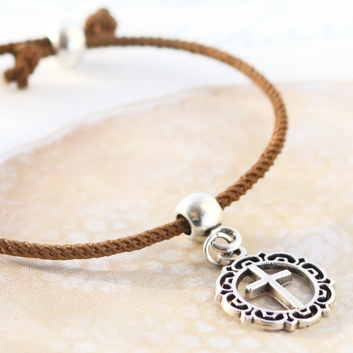 To inspire you, we have made these bracelets out of DQ trendy woven cord. These bracelets are quite simple and quick to make. First choose your favourite colours from the DQ trendy woven cord and the thread a metal DQ pendant with an eye on it. On the eye of the pendant you can hang a charm with a jump ring. To finish the bracelet, make a clasp with a DQ metal bead. Thread both ends through the bead and tie a knot at each end. The end of the cord can be carefully burned with a lighter. It's as simple as that! Good luck!