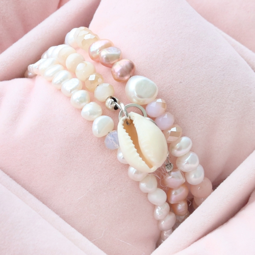Wow! These freshwater pearls look really feminine! The gorgeous soft colours are emphasized by the natural glow of the pearls. The faceted beads we added give the look some extra more shine and for a luxurious look. To keep the design in balance we aslo added some wooden beads and natural stone beads. A real match! Thread the fun bracelets on metal wire and create a pendant with a kauri shell bead for a real summer look. Attach larger pendants and semi-precious stones to the DQ leather necklace. Your version of these jewellery can be adjusted to your own style by just adding some items or leave items out. How trendy is your creation going to be?