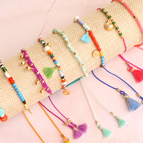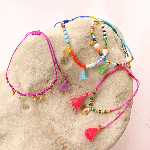 These tassels in summer colours are ideal for your summer collection. Design bracelets with macramé wire in different colours and combine shell beads, preciosa seed beads and stainless steel beads with the tassels. Of course, a trendy phone cord should not be missing in your collection!