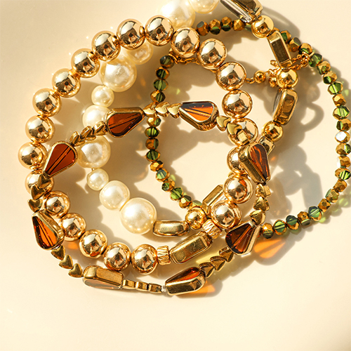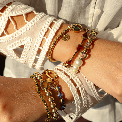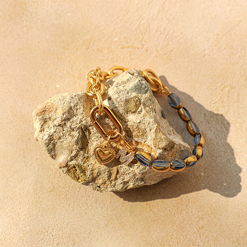 This new series of glass beads features a subtle golden edge and is available in various shapes like hearts, circles, and drops. Available in sparkling colours like green, red, and blue, they are perfect for creating luxurious bracelets or stylish bag charms. Create unique combinations with our gold and silver accents!