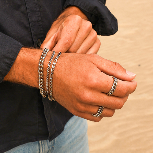 Start creating your summer jewellery collection for men today! Go for beach vibes and build trendy necklace stacks with shell beads, ocean bamboo and natural stone beads. Prefer something bolder? Make funky keychains with bandanas, statement charms and stainless steel beads. Or give your collection a bold edge with ready-made silver-coloured bracelets and necklaces. What style will you include in your collection this summer?
