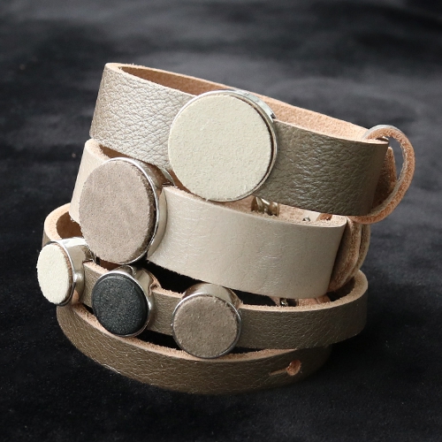 These new leather cabochons make very luxurious jewellery. Design Cuoio bracelets and keychains with DQ metal setting sliders. Finish them off with new Designer Quality leather cabochons. Thanks to the great quality, the leather will look great for a long time! Make hundreds of combinations with DQ leather cabochons and Cuoio bracelets.