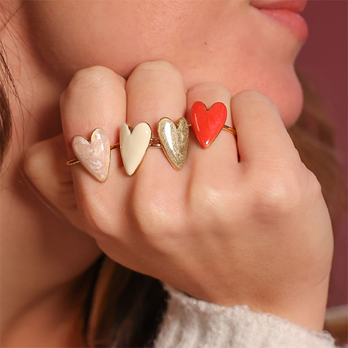 Discover our charming collection of heart-shaped stainless steel rings. Available in stunning colours such as pink, red, white and gold. Perfect for creating your Valentine collection. Get inspired and choose the perfect symbol of love!