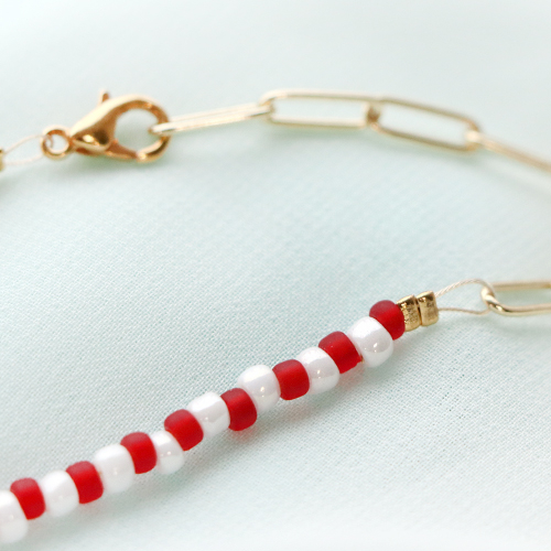 Acrylic heartshaped letterbeads Red-White