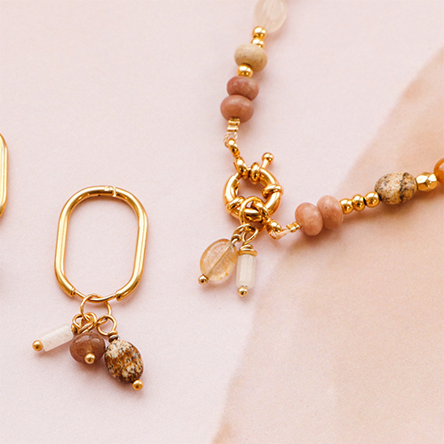 These natural stone beads are perfect for all your jewellery. Use macrame bead cord for a simple bracelet or combine a belcher chain with elastic cord upon which you thread natural stone beads. Use Katsuki beads, natural stone beads and nylon S-lon cord for an elegant bracelet. Design your own earrings using earpins to turn the natural stone beads into beautiful charms that you can hang on a stainless steel creole earring