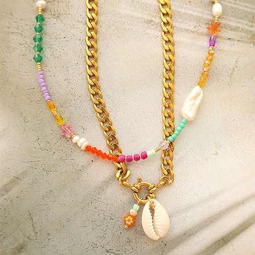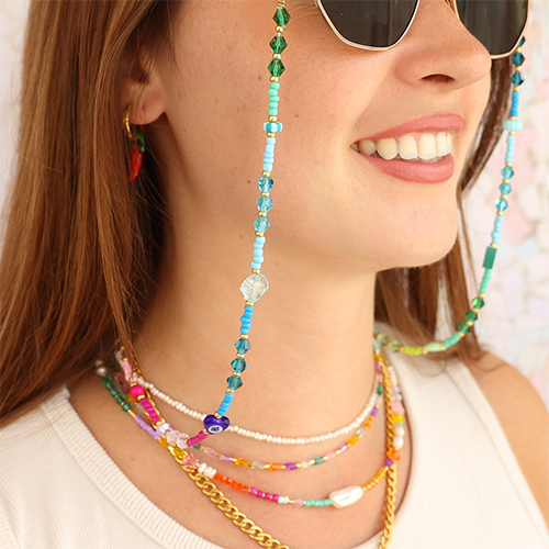 You can use this new series of top faceted beads bicone and tube in all of your jewellery. Combine the top faceted beads with glass beads rocailles, freshwater pearls and polymer beads for necklaces you can stack or for a trendy sunglass cord!