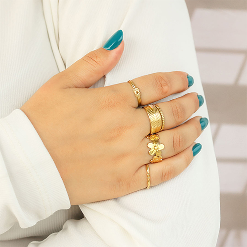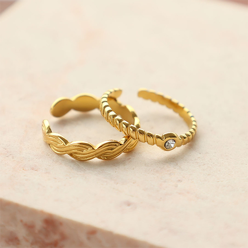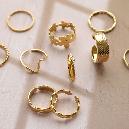This handy collection of stainless steel rings includes rings with different designs, like a flower and a heart. All rings are available in gold and silver and are adjustable in size. A super nice series to complete your jewellery collection!