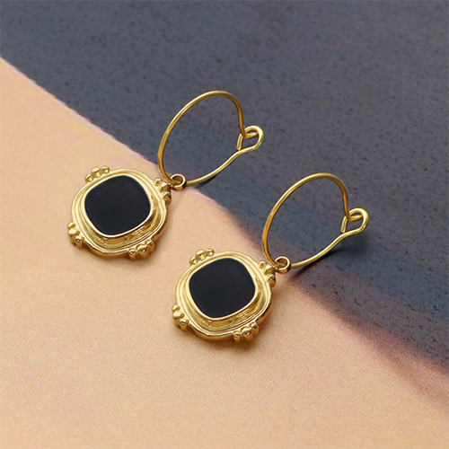 Stainless steel charms square enamel Gold-Black