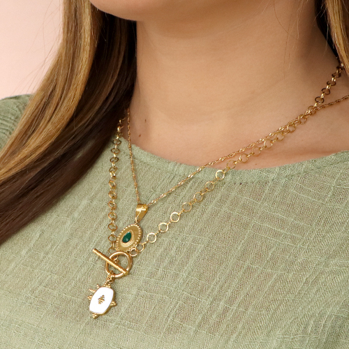 In this inspirational set we will show you that you can create beautiful jewellery with limited items. Choose a belcher chain and a nice clasp like a toggle clasp and attach the stainless steel charms onto the chain using jump rings. This way you can easily create a beautiful necklace or bracelet. To realise matching earrings, you can choose your favourite earring findings and combine them with the stainless steel charms.
