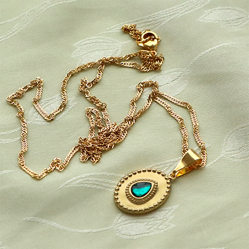 Stainless steel charms irregular with natural stone Gold-Honeydew Green