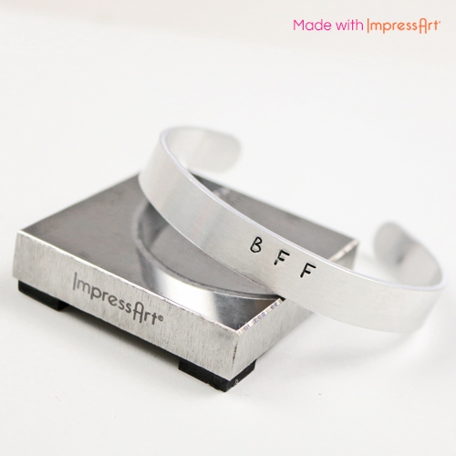 Make gorgeous personalized bracelets with ImpressArt from Beads Wholesale Online. Here you will find various bracelet strips which you can customize with letter, number, design and texture stamps. Bend the customized strip to a nice bangle by using the bracelet bending tool. Use the bracelet bending pliers to make it perfectly round. You can create a hole into the bracelet by using the ImpressArt hole punch pliers. That way you can attach a nice charm. The possibilities with ImpressArt are endless. Get inspired and view our video tutorial for more tips and tricks on making bracelets with ImpressArt.