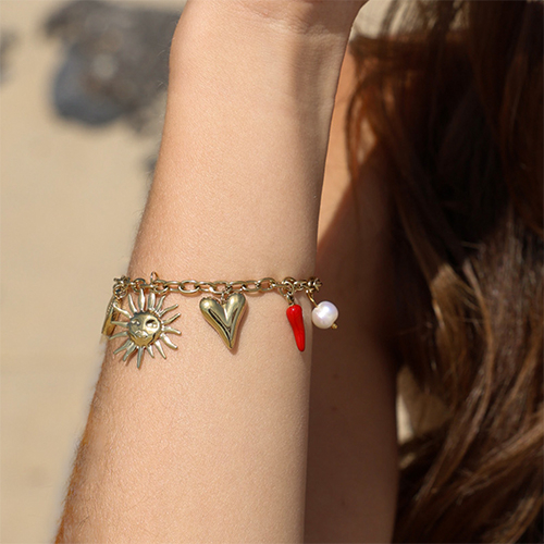 • Stainless steel bracelets with charms summer Gold-Red-White