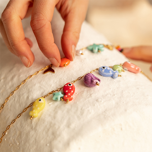 • Stainless steel necklaces with charms fish Gold-Multicolour