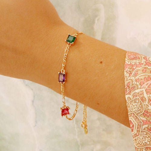 Crystal glass connectors square Purple-Gold