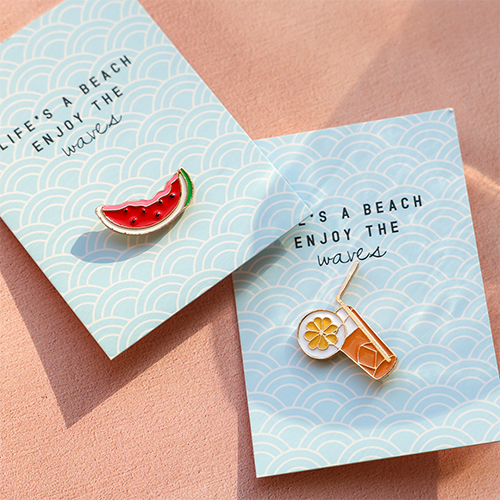 This new collection of brooches and pins brings summer to you! The brooches are available in various shapes, such as cactus, flower, cherry and lemon. The pins have various texts and summery designs, such as strawberries, palm trees, flamingos and apples. Ideal for adding a cheerful touch to your outfit!