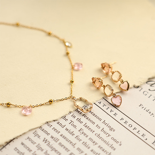 • Crystal glass charms heart Light Pink-Gold