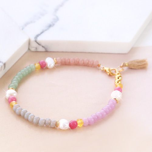 Our new collection Preciosa glass seed beads is perfectly fit as a foundation in all your jewellery projects. We have used these beautiful beads for creating a necklace with matching bracelets. Because the Preciosa beads are made of glass, we thought it was fun to combine the Preciosa beads with other natural materials. We choose to use freshwater pearls and chips stone natural stone beads. Decorate the jewellery with gold coloured details and tassels you get an amazing effect! Create matching bracelets to go with the necklace for a unique ensemble, on which you will most certainly get some fun reactions! Due to the enormous assortment Preciosa glass seed beads you can go crazy with colour combinations. Good luck!