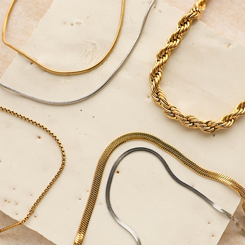 Discover the charm of our new collection of stainless steel necklaces and bracelets. Available in various stylish variations like round and twisted. Perfect to combine or match with your other jewellery for a beautiful spring collection