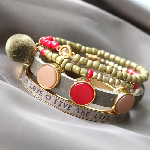 Get inspired by our newly made jewellery with stainless steel bracelets, rocailles and Cuoio items. Absolutely fabulous! We love these colours, but you can obviously change them if you would like. Make fun bracelets with our glass seed beads and Swarovski stones. Make a matching Cuoio bracelet with the same matching colours. Complete the look with a stainless steel bracelet with leather, like this one with 5 mm flat quote leather. Trendy bracelets you can wear every day!