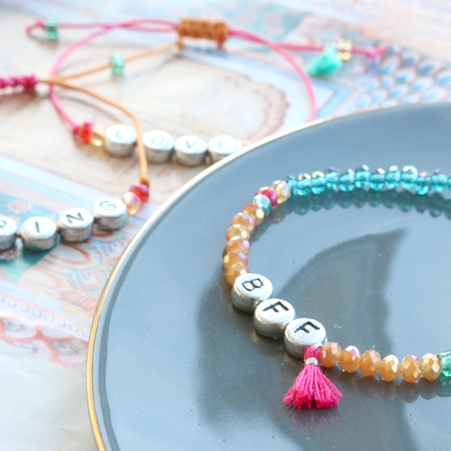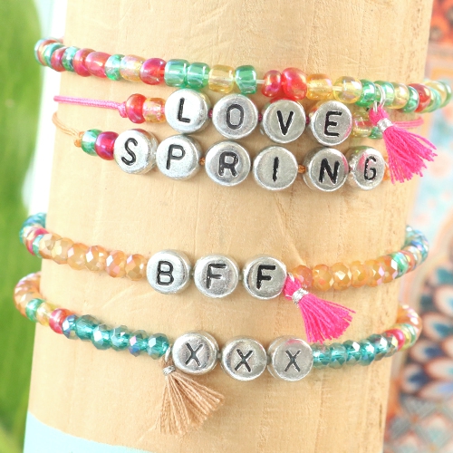 Quote jewellery with letter beads metal look and colourful details