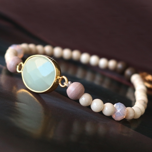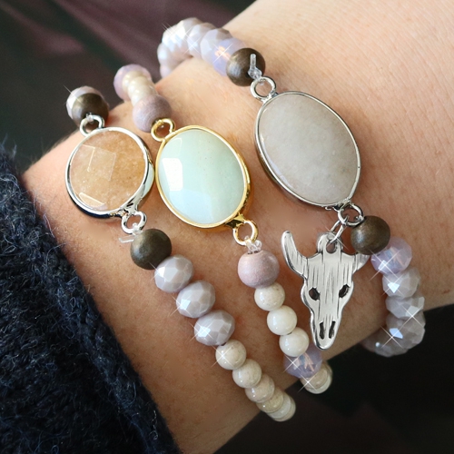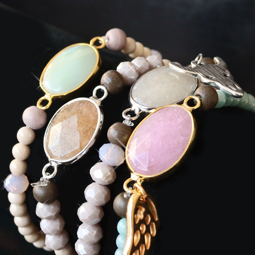 Go for a quick party look and use our marvelous semi-precious stone pendants as an eyecatcher. We made this fun jewellery by using soft colours and mixing it with other nice materials. Use faceted beads and wooden beads to create this look. For bracelets you can also use glass pearls and natural stone jade beads. Mix earthly shades like grey, brown and green to emphasize the natural look. These semi-precious stone pendants are also suitable for earrings. Use our DQ metal findings for earrings. That way you can achieve the nicest result. For the perfect finish you can use faceted beads and trendy DQ metal charms.