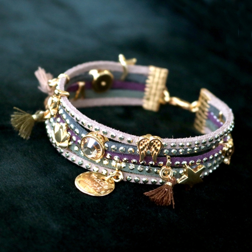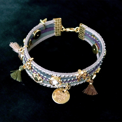 Shiny jewellery of faux suede with strass, Swarovski and DQ metal