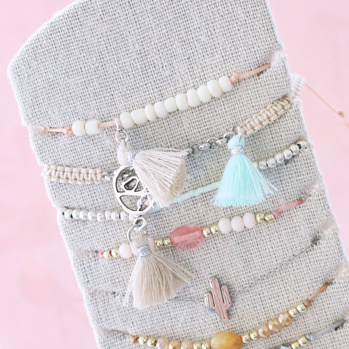 We keep on seeing colourful statement earrings passing by in the magazines and on the catwalk. The best jewellery findings to create these earrings are tassels and Designer Quality European metal! Use tassels in soft and light colours to match your DQ metal. We have designed a few bracelets and necklaces that go perfectly well with the statement earrings! This is a lovely combination, isn’t it?