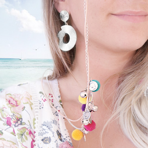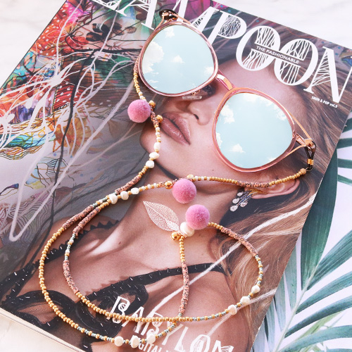 With these sunglasses cords you will be ready for this summer, let the sun shine! We used multiple stringing materials and techniques to make these cords. Take jewellery findings like cowrie shells, macramé bead cord, pompom beads, fresh water pearls, katsuki beads, DQ metal and seed beads! This inspirational set is very versatile!