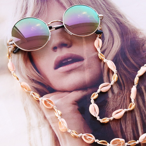 Sunny days! DIY sunglasses cords with cowrie shells, pompom beads, macramé bead cord and more!
