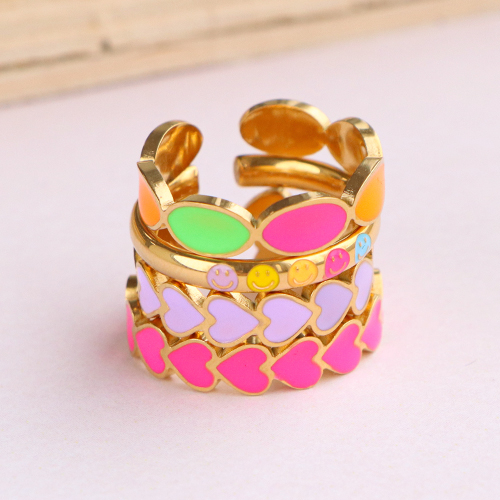 Stainless steel rings enamel smiley Neon Multicolour-Gold