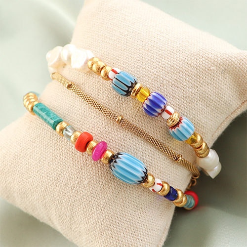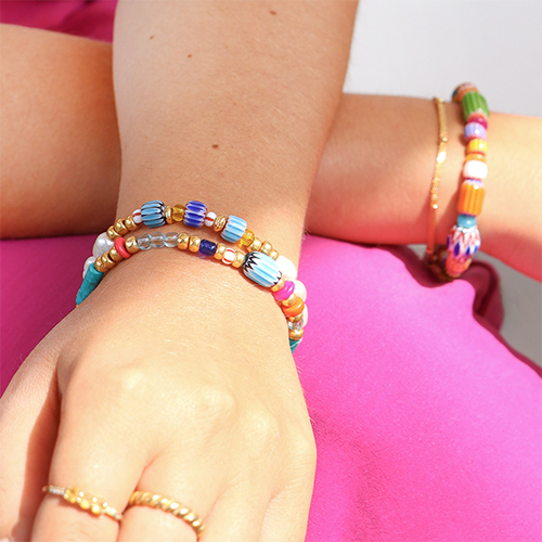 These colourful millefiori beads with stripes are new in the collection and perfect to use in trendy boho bracelets. Combine the millefiori beads with natural stone beads, Miyuki beads and glass beads seed beads and let your inspiration flow!