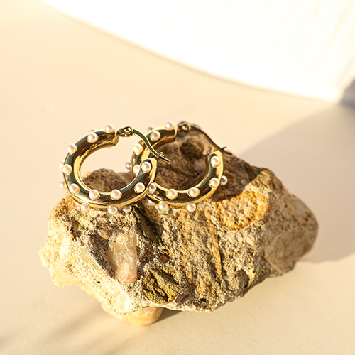 Stainless steel earrings / earpins creoles with imitation pearls Gold